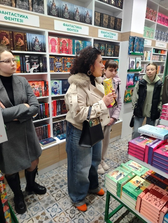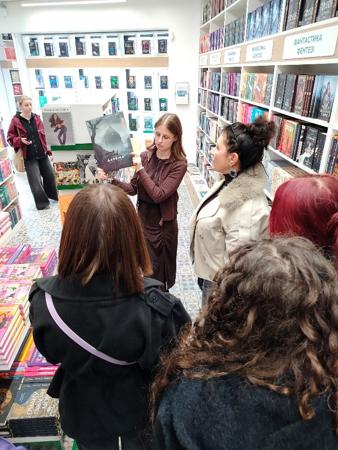 У межах освітнього компонента «Книжкова графіка» студенти груп ГД-23-1, ГД-23-2 та ГД-24-1 у супроводі доцента кафедри рисунку та проєктної графіки Світлани Петращук здійснили виїзні заняття до книгарні Vivat (м. Хмельницький, вул. Проскурівська, 2).
